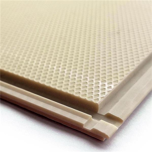 石塑地板是基于高科技開發(fā)出的新型環(huán)保地板,具有零甲醛、防霉、防潮、防火、防蟲、安裝簡單等特點(diǎn)。它是由擠出機(jī)結(jié)合T型模具擠出PVC基材,用三輥或四輥壓延機(jī)分別把PVC耐磨層、PVC彩膜和PVC基材,一次性加熱貼合、壓紋的產(chǎn)品,工藝簡單,貼合靠熱量完成,不需要膠水,不含重金屬、鄰苯二甲酸酯、甲醇等有害物質(zhì),符合EN14372、EN649-2011、IEC62321、GB4085-83標(biāo)準(zhǔn),在歐美發(fā)達(dá)國家及亞太市場廣受歡迎。